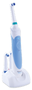 Rotadent is a fantastic toothbrush for patients with many different needs. It has been shown to minimize staining and white spots in orthodontic patients and has been proven to control plaque buildup and gingivitis around braces. It takes less brushing force to use than other power toothbrushes, which makes it great for veneers or sensitive gums. It is safe to use on dental restorations like crowns, bridges, and fillings, and it’s also safe for implants!